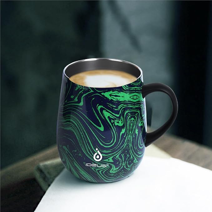 Ideus 16 oz (470 ml) Insulated Coffee Mug with Handle and Lid, Double Wall Stainless Steel Vacuum Thermal Coffee Mug, Travel Coffee Cup Thermal Cup for Home and Office (Green Zebra)