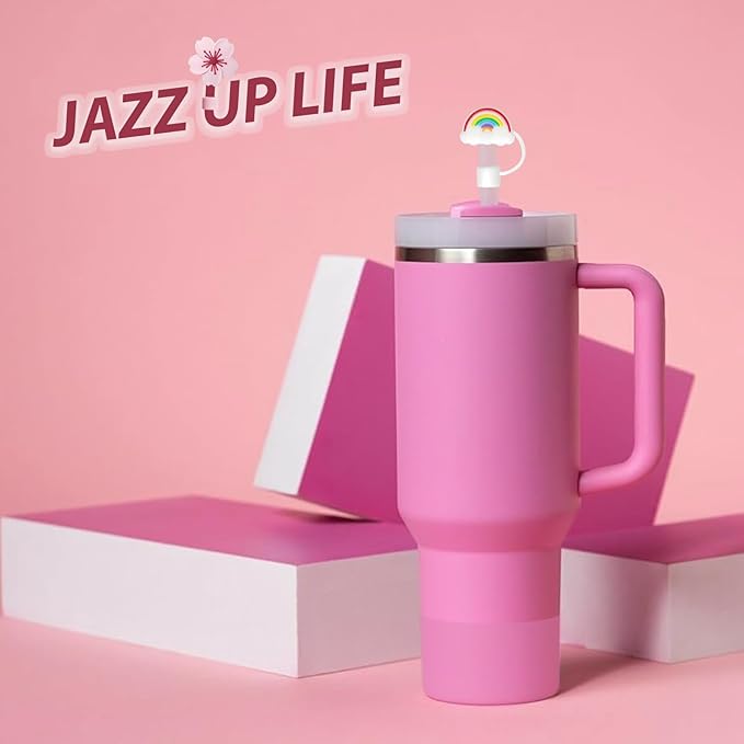 - Package Includes - The stanley cup accessories set includes 2 hexagon spill stoppers, 2 square spill stoppers and 2 round lid leak stoppers, 1 pcs flower straw topper and 1 pcs rainbow straw cover, 1pcs Peony silicone boot sleeve, specially designed for Stanley Adventure Quencher 40oz and Stanley IceFlow 20oz 30oz tumblers water bottles. Straw covers match for 9-10mm straws.