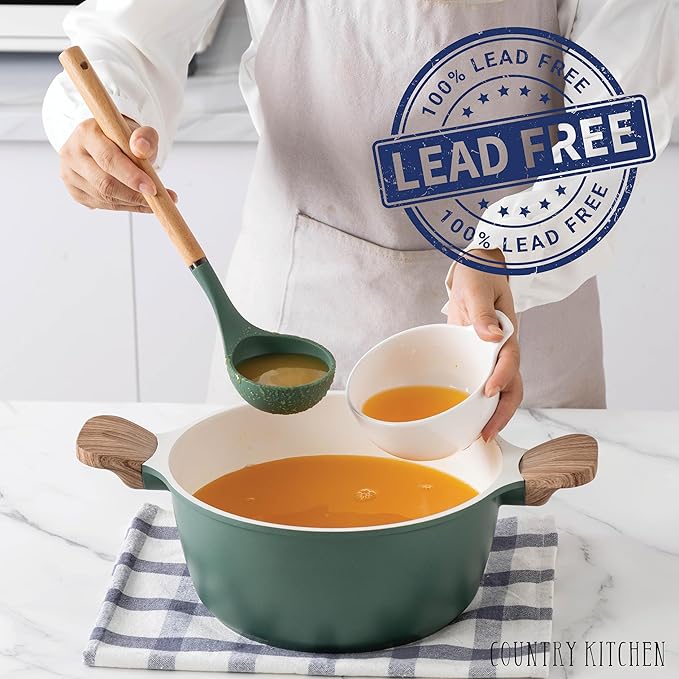 - SAFE COATING - Our Cast Aluminum pots and pans are non-toxic and safe to use for your everyday cooking. Cookware without the chemicals that can be used as a soup pot, sauce pan, skillet or non stick frying pan set. with superb food release and easy cleanup. Hand wash recommended to maintain the nonstick finish.
