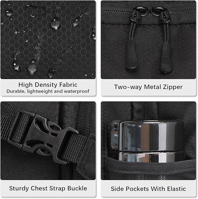 - 【 High Efficiency Hydration Backpack System】: Water backpack for hiking with 2 L bladder, BPA-free, food-grade PEVA material, and hose clamp.The unique leak-proof valve and sealing port design ensure that no matter how the backpack shakes or tilts, it can not leak. Bottle backpack Make it easy to hydrate on the go and keep your body hydrated.