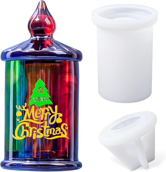 Jar Resin Molds Valentine Storage Box with Lid Epoxy Resin Casting Mold Cylinder Jars Candle Jewelry Trinket Container Mould DIY Planter Candy Organizer Making Concrete Cement Moulds Craft Home Decor