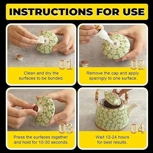 - đź’Ş Superior Bonding Power & Reliability: Engineered with advanced formula, our super glue delivers outstanding adhesive strength, securing ceramics and more with a long-lasting hold. No matter if it's daily-use mugs, figurines, or home decoration, you'll enjoy a dependable, permanent fix.