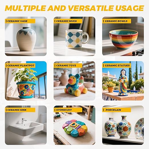 - 🔧 Versatile for Multiple Materials & Surfaces: Bonds ceramics to various materials like glass, plastic, wood, and metal. Works effectively on uneven, rough, or vertical surfaces, making it suitable for a wide range of DIY and repairs, from home décor to functional items like vases and tableware.
