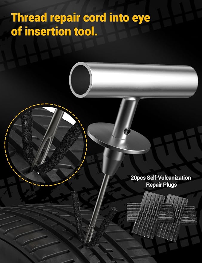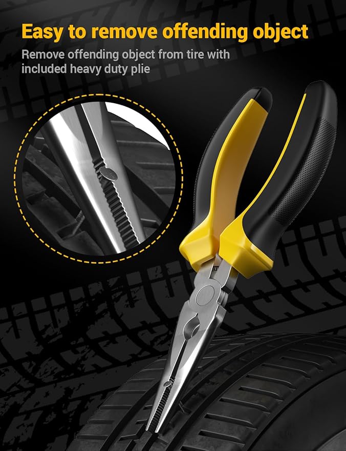 - Easy to Use: Our tire plug kits come with everything you need, including a T-handle and spiral probe tool that make piercing into any tire easy. The portable storage case takes up very little space, making it easy to carry with you wherever you go.