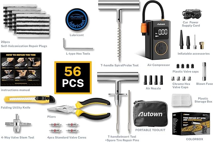 - Professional Quality: The AUTOWN tire repair kits are made of refined high-quality steel and upgraded to comply with exacting standards of audit. This ensures that the kit is of professional quality and can repair even the toughest tires on the market.