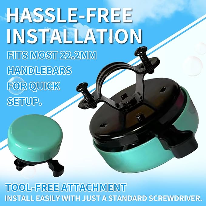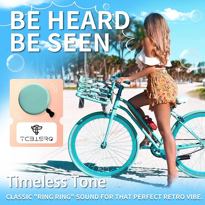 TCBIERO 95dB Bike Bell for Cruisers | 4 Colors (Black/White/Water Green/Pink) | Rust-Proof All-Ages Design | Loud Ring Ring Sound Alarm