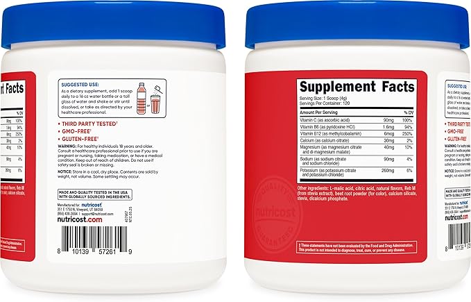 Nutricost Electrolyte Complex Powder (120 Servings, Fruit Punch) - Hydration Supplement Drink Mix with Vitamins and Minerals