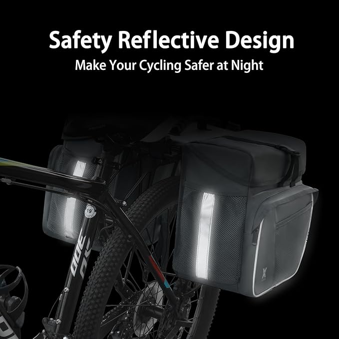 - SAFE RIDING: For safer nighttime riding, there are reflective strips to increase visibility. Plus, the obtuse-angled design prevents your legs from hitting the bag during riding. Most Bicycles With Cargo Racks can fit the Vuudh bicycle rear bag just fine, such as mountain bikes, city bikes, road bike.