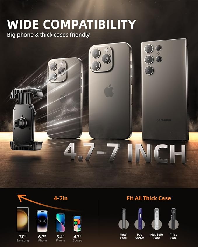 - Compatible Devices : All 4.7-7.0'' Cell Phones with thick phone cases 【For iPhone】iPhone 15/ 15 Pro/ 15 Pro Max/ 15 Plus/ iPhone 14/ 14 Pro/ 14 Pro Max/ 14 Plus/ 13/ 13 mini/ 13 pro/ 13 pro max/ 12/ 12 mini/ 12 pro/ 12 pro max/ SE/ 11/ 11 Pro/ 11 Pro Max/ XS/ XR/ XS Max/ X/ 8/ 8 Plus 【For Samsung】Samsung Galaxy S24/ S24+/ S24 Ultra/ S23/ S23+/ S23 Ultra/ S22/ S22+/ S22 Ultra/ S21/ S21+/ S21 Ultra/ S20/ S20+/ S20 Ultra/ S10/ S10e/ S10+/ S9/ S9+/ S8/ S8+/ S7/ S7 Edge/ S6/ S6 Edge/ S5/ S4/ Note 20/ Note 20 Ultra/ Note 10/ Note 10+/ Note 9/ Note 8/ Note 7/ Note 5 【For Google】Pixel 6/ Pixel 6a/ Pixel 6 Pro/ Pixel 5/ Pixel 5a/ Pixel 4/ Pixel 4 XL/ Pixel 4/ Pixel 3/ Pixel 3 XL/ Pixel 3a/ Pixel 3a XL 【For OnePlus】OnePlus11/10 Pro/9 Pro/9/8 Pro 【For Sony】Xperia 1 III/1 II/10 II/XZ3/XZ2/XZ2 Premium/Z4V 【For LG】LG Wing/ Velvet/V60/G8/V50 /V40/V35/G7/G6/V35/V30 【For Nokia】Nokia XR20/9.3 PureView/9 PureView/8 Sirocco/6; Nokia Lumia 930/929 (Icon)/928/920/830 /735/ 1520 【For Motorola】Motorola Edge+/ Moto X Force/ Moto Maxx/Droid Turbo 2 【For BlackBerry】BlackBerry Evolve X/Evolve/PRIV/Passport, etc All 4.7-7.0'' Cell Phones with thick phone cases 【For iPhone】iPhone 15/ 15 Pro/ 15 Pro Max/ 15 Plus/ iPhone 14/ 14 Pro/ 14 Pro Max/ 14 Plus/ 13/ 13 mini/ 13 pro/ 13 pro max/ 12/ 12 mini/ 12 pro/ 12 pro max/ SE… See more