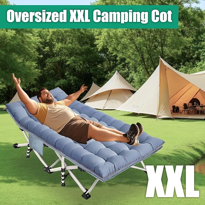- Upgraded Extra-Wide Design: This XXL camping cot features an upgraded, extra-wide frame measuring 32 inches in width, providing more space and enhanced comfort for a better sleeping experience.