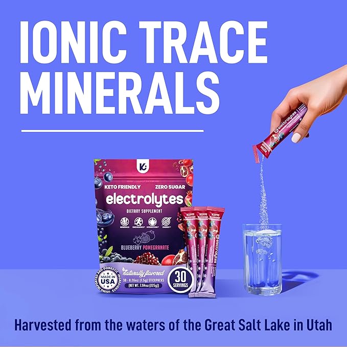 Keppi Electrolytes Powder Packets – Blueberry Pomegranate 30 Servings – No Sugar Hydration Supplement with Potassium, Magnesium, Sodium – Keto, Vegan, Fasting-Friendly, Zero Calorie Hydration Packets