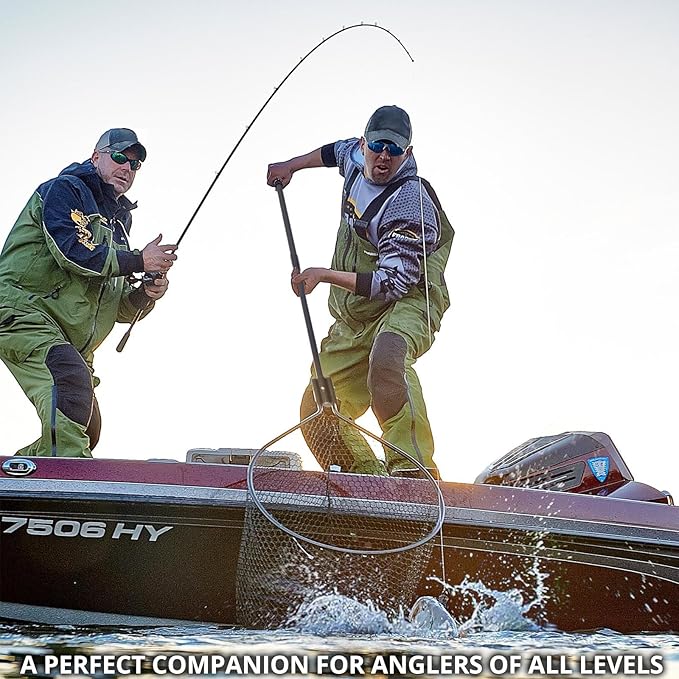 High Strength Large Landing Net - Fishing Net with Long Telescoping Handle and Soft Rubber Netting, Dip Net for Fishing, Ideal for Boat, Pier, River Angling