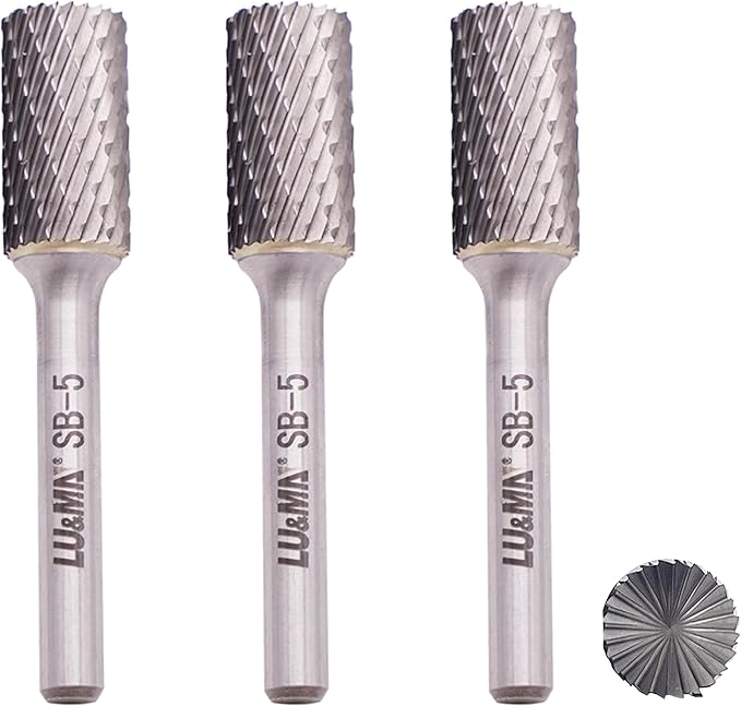 LU&MN SB-5 Tungsten Carbide Burr Cylinder Shape Double Cut Rotary Burrs File(1/2''cutter Dia,1''Cutter Length) with 1/4'' (6.35mm) Shank dia,3PCS