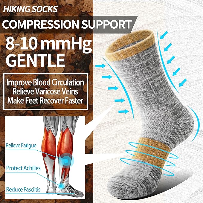 - Composition:Anlisim womens hiking socks are made of 70% Merino Wool, 23% Polyester, 5% Spandex , 2% Nylon,which are wearable and durable.And you can wear them in all season.