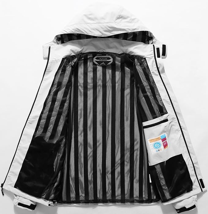 - Multiple Pockets: The hooded hiking coat is equipped with inside chest pockets and two occlusion waterproof side pockets. These spacious pockets offer convenient storage for accessories such as mobile phones, keys, cards, and more