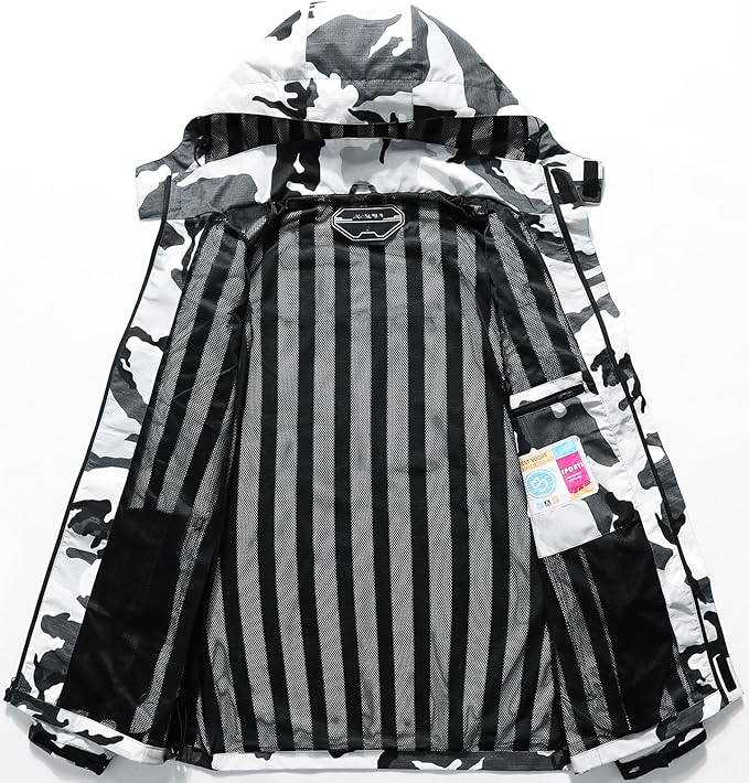 - Multiple Pockets: The hooded hiking coat is equipped with inside chest pockets and two occlusion waterproof side pockets. These spacious pockets offer convenient storage for accessories such as mobile phones, keys, cards, and more