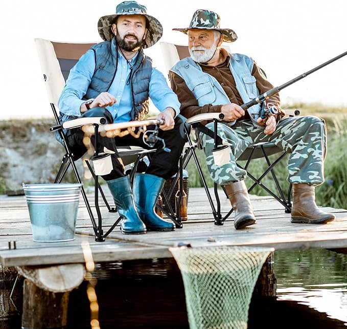 HAPPYGRILL Folding Camping Chair with Carrying Bag, Portable Lawn Chair with Cup Holder, 330 LBS Outdoor Chair for Outside Fishing Travel Swimming Picnic