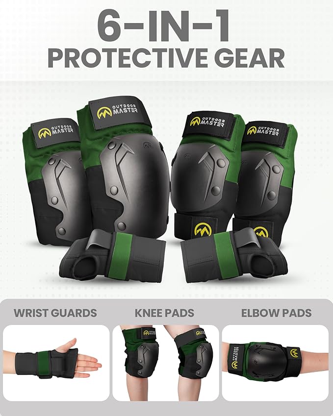 OutdoorMaster Knee Pads for Skating Knee and Elbow Pads for Adult &Youth - Skateboard Protective Gear with Wrist Guards 3 in 1 Saver Series for Skate