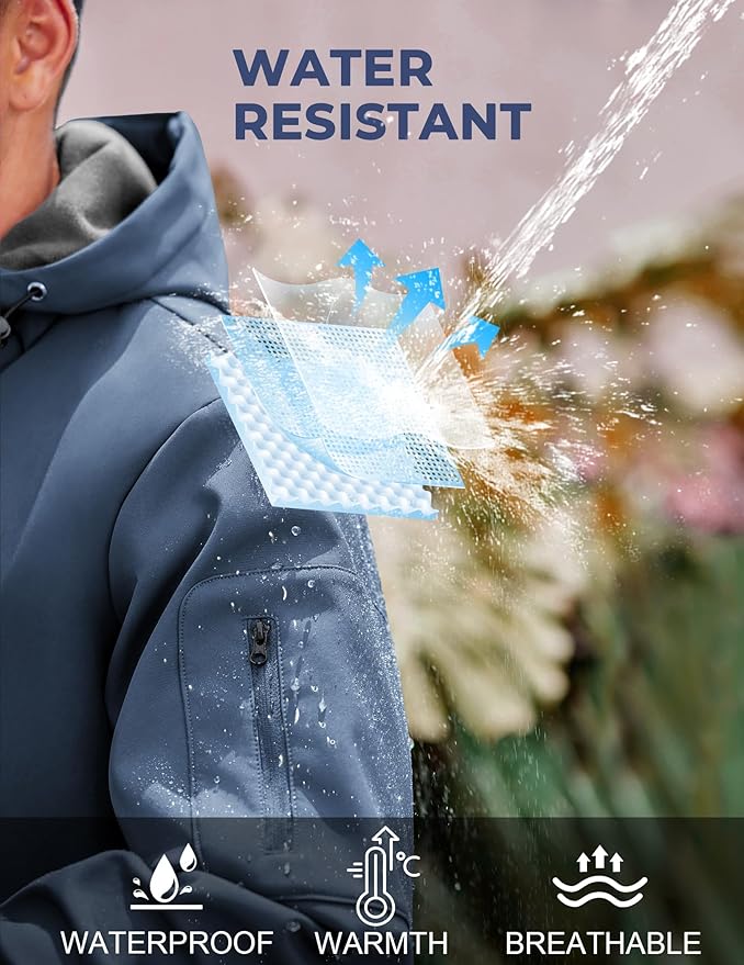- Waterproof & Windproof: Men's lightweight softshell jacket with durable shell to resist water, wind, dirt and oil, always keep you dry and clean. It is very suitable for outdoor environments with light rain, humidity or snow.