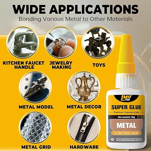- 🛠️ Multi-Material Compatibility: Specially formulated for metal bonding, our super glue also bonds plastic, wood, ceramic, glass, rubber, and leather. Its universal compatibility supports varied repair needs, making it a powerful versatile adhesive solution for household fixes, DIY crafts and more