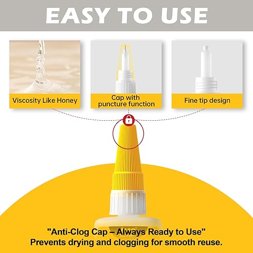 - 🛡️ Anti-Clog Cap for Smooth Application: Equipped with an anti-clog cap, our super glue can prevent the bottle from drying out or clogging. Ensures smooth and consistent glue flow every time, making it easy to reuse without hassle and saving you from unnecessary waste.