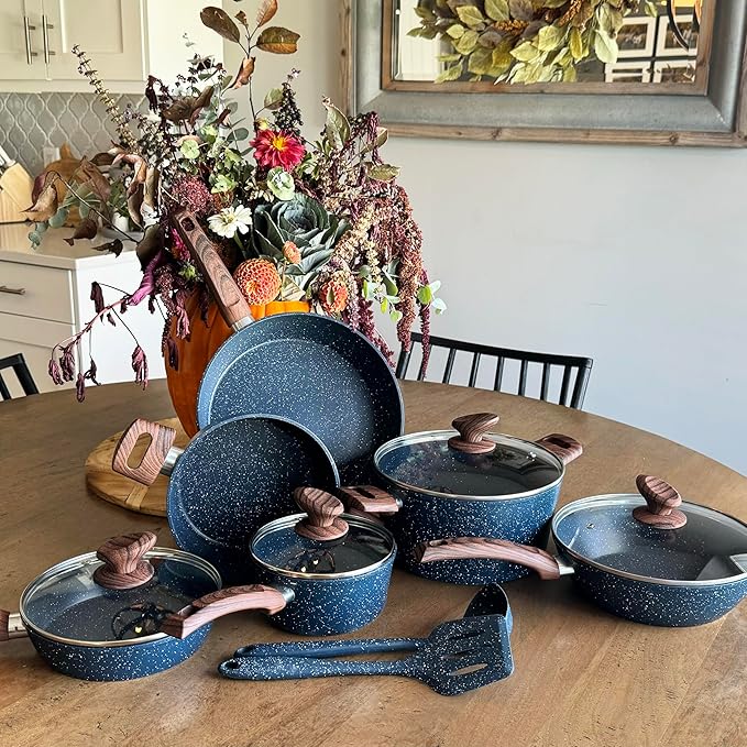 MAISON ARTS Pots and Pans Set Non Stick, Kitchen Cookware Sets Nonstick, 12 Piece Granite Cooking Pot and Pan for Induction, Stovetop, Blue