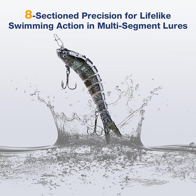 - Vivid Swimming Action: Goture bass fishing lures are meticulously designed with 8 segmented multi-jointed bodies, allowing them to sink slowly and exhibit a natural S-shaped swimming action. These bass lures mimic the movement of real fish, enticing more catches and tempting predator fish to strike