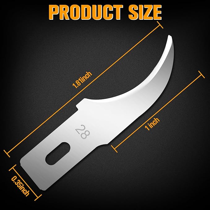 - 【100 PCS #28 Blades Set】You will receive 100 Pack durable and sharp #28 exacto blades. You can create with confidence without worrying that the blades will run out soon. These 100 blades are all placed in a box. The independent packing box makes you easy to carry and safer to use.
