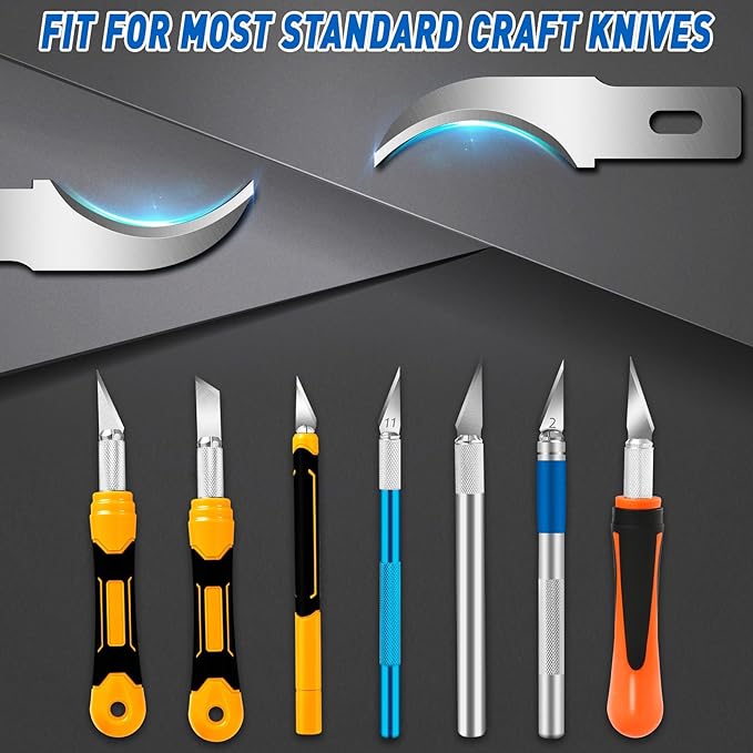 - HIGH-QUALITY MATERIAL - Our exacto blades are made from premium high carbon steel, ensuring moderate hardness, excellent wear resistance, and superb machinability. Our hobby blades are sharper and more durable than other brands.