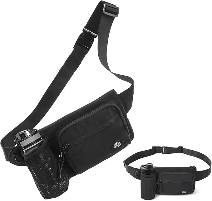 Waist Pack with Water Bottle Holder for Men Women Waist Bag Running Waist Pack Waterproof for Outdoor Travel Cycling Climbing Walking Fit All Phones (Bottle Not Included)(Black)