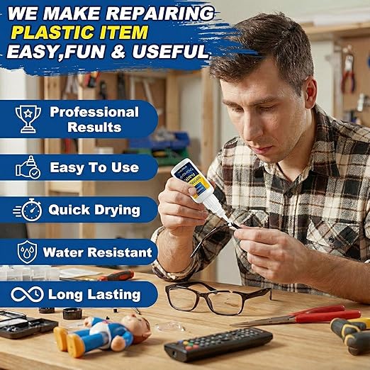 - SAFE AND ODORLESS: Ensuring your safety and satisfaction, our Plastic Adhesive is both odorless and non-toxic. It provides a clean application process with no harmful fumes, and dries clear to preserve the original look of your items. Perfect for use in any environment without concerns for residual marks or smells