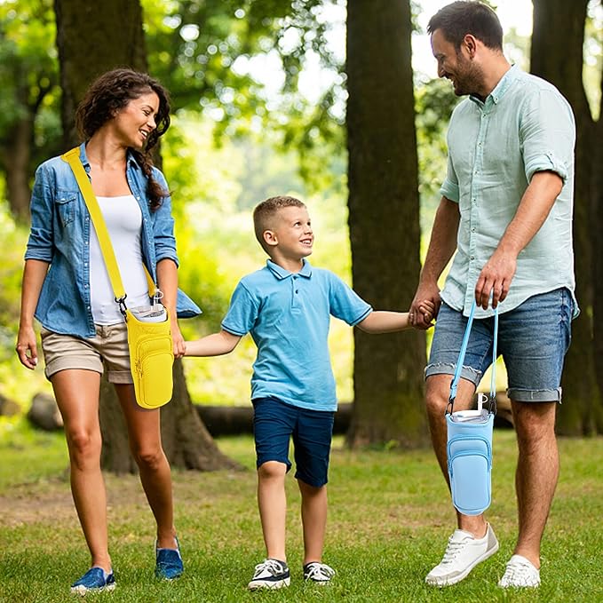 • 【Adjustable Strap】Water bottle holder with adjustable and detachable strap, adjustable range is 24-48 inches, fits most people's body sizes. Adjust the shoulder strap to the shortest length and use it as a handle.