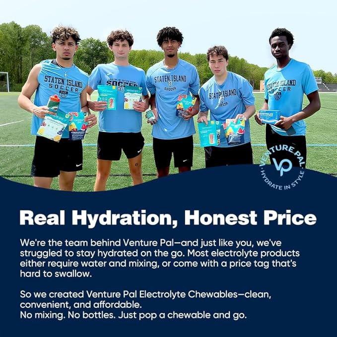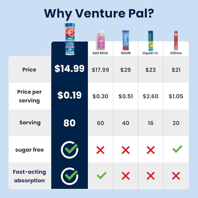- TAKE HYDRATION ON-THE-GO: Venture Pal's electrolyte tablets are perfect for active lifestyles, from gym sessions to hikes or busy days. Compact and convenient for athletes like runners, cyclists, and golfers, they fit easily in your bag—or even make great stocking stuffers this holiday season