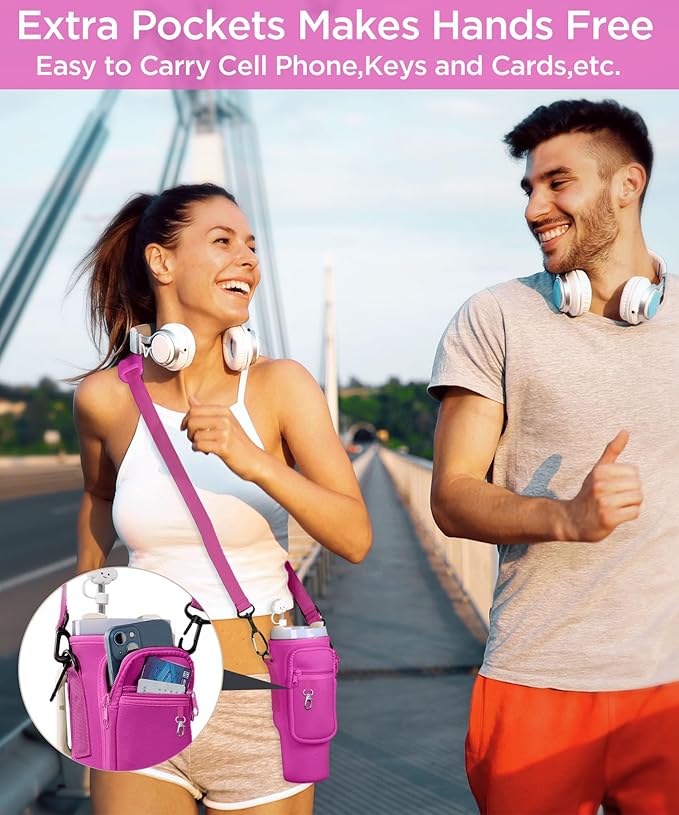 - 【Adjustable Shoulder Strap and Multiple Pockets】For Stanley Quencher 40 oz Cup Sleeve comes with a removable and adjustable padded shoulder strap, the shoulder strap can be easily adjusted between 27.5" and 50" to fit a wide range of body shapes. The water bottle holder for stanley accessories 40 oz tumbler is designed with two front pocket designs that provide plenty of room for all your personal belongings such as smartphones, cash, cards,keys,etc