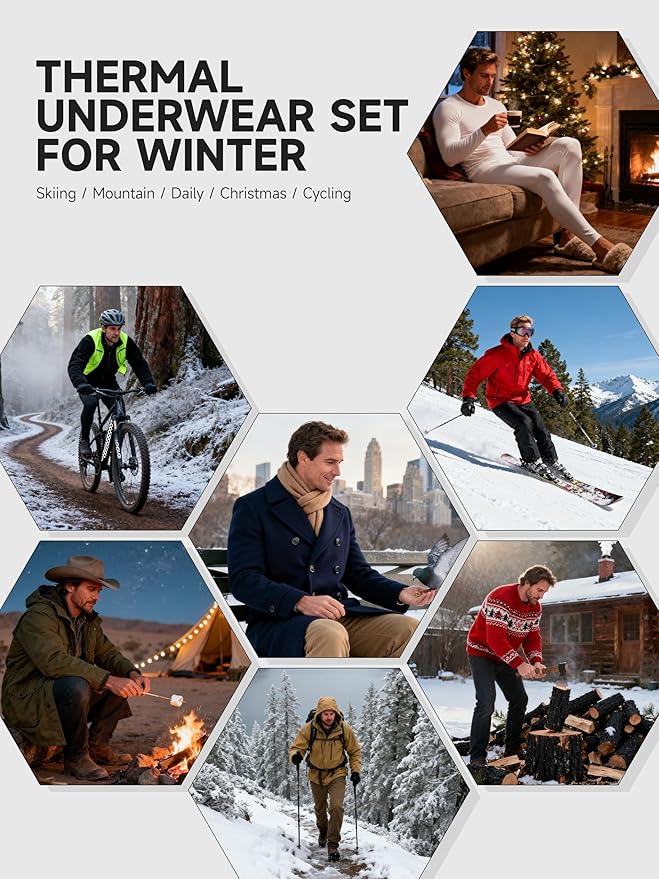 • Versatile Mens Thermal Underwear: The base layer men cold weather can not only for wearing indoors in winter, but also suitable for activities like skiing, hiking, cycling, snowboard, hunting or walking