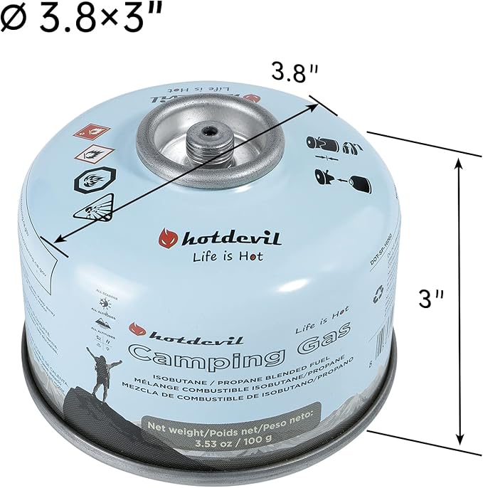 Hotdevil Isobutane Fuel Canister 100 Gram Camping Stove Fuel Butane Propane Blend Camping Fuel Gas Canister Backpacking Fuel Light-weight Compact Camping Fuel Mini Propane Tanks Camp Stove Fuel 3.53oz