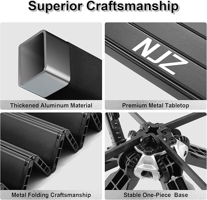 - Portable and Space-Saving: Designed to neatly fit into a carry bag and weighs only 12 lbs, NJZ outdoor folding table is easy to transport and saves valuable space. It's great enhancement for backyard gatherings, RV trips, and car camping adventures