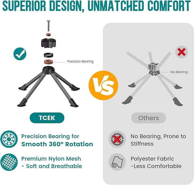 - Your Adventure, Your Way: Take the TCEK swivel chair anywhere—camping, hiking, beach, fishing, sports, soccer and more. Ultralight, small-sized, and portable, TCEK outdoor gear enhances every adventure, providing comfort wherever your journey takes you
