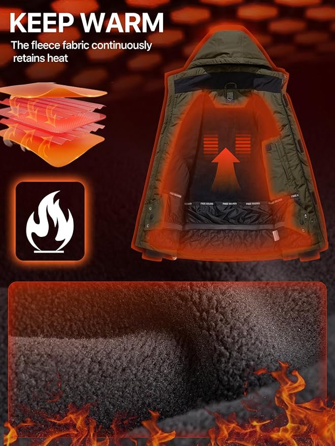 FREE SOLDIER Men's Waterproof Ski Jacket Fleece Lined Warm Winter Snow Coat with Hood Fully Taped Seams