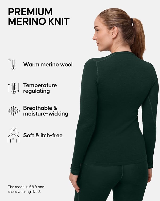 DANISH ENDURANCE Merino Wool Long Sleeve for Women, Thermal Vests for Women, Base Layer Underwear Tops, Winter Thermals
