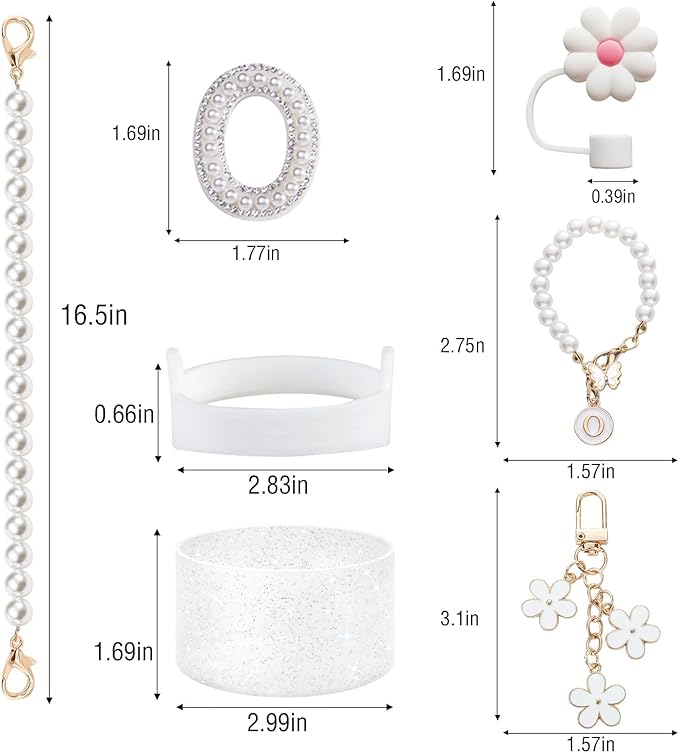 - đăPackage Includedă1pcs water bottle handle pearl strap, 1pcs pearl letter Charms, 1pcs pearl initial sticker, 1pcs bling bottle boot, 1pcs silicone straw cover, 1pcs daisy key-chain, not include cup