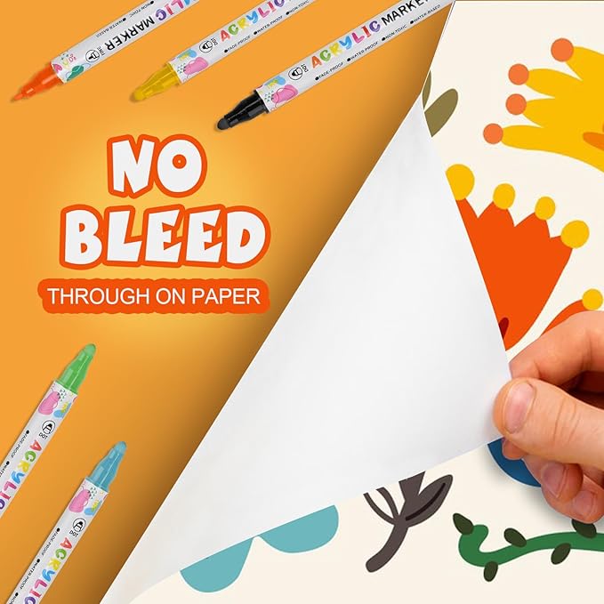- Strong adhesion acrylic markers for Multi-Surface Any Project ---- Designed to perform on paper, fabric, wood, metal, glass, rock, and ceramic, these water-based markers provide consistent, fade-resistant, Waterproof and anti shedding, letting you create with confidence across multiple surfaces.