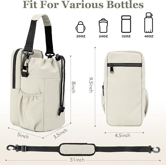 - 2.MULTIPLE WATER BOTTLE USE: Dimensions: 4.5*5.1*9.45*inches. JRQCSJY water bottle carrier with strap fits most brands of 32 oz and 40 oz water bottles, great for glass bottles, plastic bottles, tumblers, and sports drinks