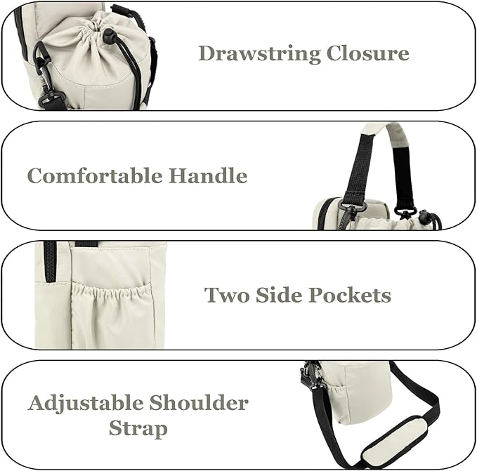 - 1.PREMIUM INSULATION MATERIAL: Water bottle bag crossbody is made of high-quality water-resistant polyester fabric, protecting your bottle from scratches. The insulated aluminum foil layer inside helps helps maintain the ideal temperature of your beverage