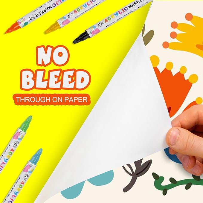 - Strong adhesion acrylic markers for Multi-Surface Any Project ---- Designed to perform on paper, fabric, wood, metal, glass, rock, and ceramic, these water-based markers provide consistent, fade-resistant, Waterproof and anti shedding, letting you create with confidence across multiple surfaces.