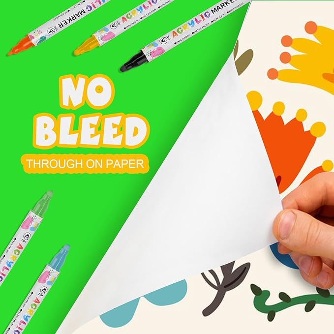 - Strong adhesion acrylic markers for Multi-Surface Any Project ---- Designed to perform on paper, fabric, wood, metal, glass, rock, and ceramic, these water-based markers provide consistent, fade-resistant, Waterproof and anti shedding, letting you create with confidence across multiple surfaces.