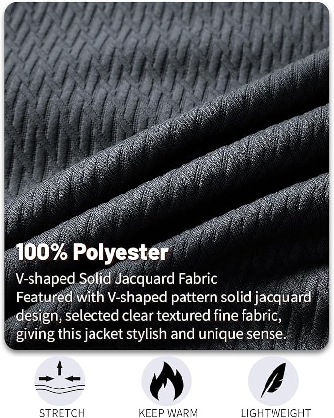 - 【STYLISH DESIGN】: Mens Casual Jacket designed with a full zip, ribbed hem and cuffs, left arm with decorative zipper and 2 side pockets on the front. Featured with V-shaped pattern solid jacquard design, selected clear textured fine fabric, giving this jacket stylish and unique sense.