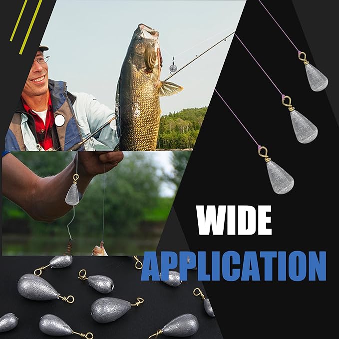 - TEAR DROP DESIGN: Fishing weight sinkers are designed tear drop shape that speed up sinking, reduce falling resistance and the possibility of entanglement with stones or rocks.