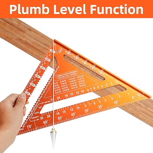 - 【Multi-function】It Functions as a rafter square for measuring and cutting roof rafters. This carpenter square is used as a try square, miter square, protractor, and saw guide in various carpentry and woodworking tasks