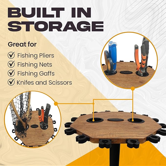 - SPACE-SAVING, 360° ACCESS DESIGN: Fishing rod organizer is 13.5" in diameter, sturdy, and lightweight, making maneuvering easier even with all your fishing gear; its vertical design reduces clutter and frees up floor space